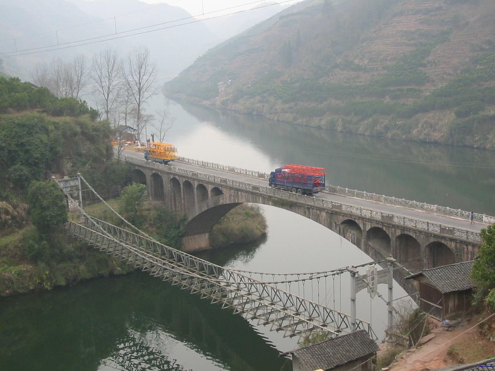 該橋是我國(guó)公路上最早修建的現(xiàn)代鋼鏈吊橋。