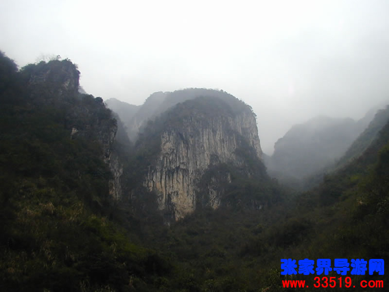 南天門——沿著河水一直往里走,在溪水最深處,可以仰望那隱藏在云霧里的南天門。它并不同于天門山的天門洞。它獨(dú)立于眾山之中,就像真正的通天大門,當(dāng)你翻過了前面的天門洞,卻還要再通過這座南天門,方可真正羽化登仙。南天門旁邊的幾座山峰,也都生的奇形怪狀,倒也天然形成了一個(gè)個(gè)大大小小的自然景觀。宛如天兵天將般守衛(wèi)南天門的將軍巖,象征南天門仙家氣息的蠟燭峰等,散落在四周,構(gòu)成了一個(gè)整體的山體奇觀。