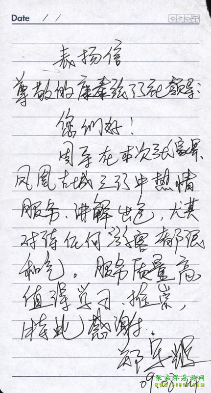 - 游客夏先生為表揚導游李姣姣寫來表揚信致我張家界... [14811]