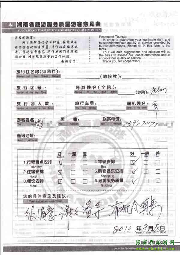 2010年9月18日華先生旅游質(zhì)量反饋:導(dǎo)游很好,有機(jī)會(huì)再來