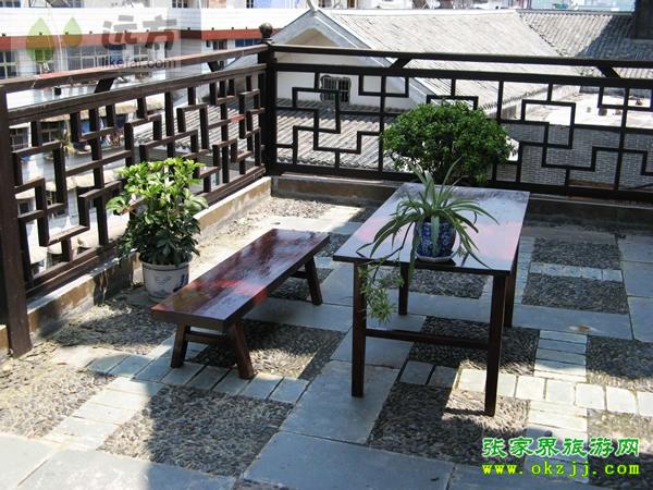 活動(dòng)區(qū)域有兩個(gè),一個(gè)是走廊活動(dòng)區(qū),適合吹風(fēng)、發(fā)呆,一個(gè)是屋頂陽(yáng)臺(tái)活動(dòng)區(qū),適合日光浴,陽(yáng)臺(tái)上的盆景和花卉會(huì)映襯著天門(mén)山景!