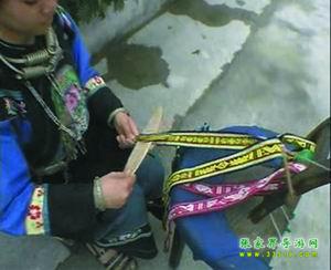 苗家花帶,織花帶,是苗家姑娘最盛行最喜愛的一種習(xí)俗。在苗家,從女兒長到七八歲起,母親就要叫他做針線活,待到十歲左右就交他學(xué)織花帶,如果母親技藝不高,還要請寨子里花帶技術(shù)最高的婦女來教。又得女孩子,從母親或姐姐那里初步學(xué)到織花帶技術(shù)后,就在本寨子邀同齡伙伴,三五個在一起,互相切磋技藝。待到編制技術(shù)日趨成熟后,姑娘也大了,就往往一個人躲在房中編制出色鮮艷的花帶,風(fēng)險(xiǎn)少女的情愛。苗家姑娘,往往拿自己編制的花帶作為禮品相贈,特別是姑娘有了意中人,就吧花帶作為愛情的信物相贈,以表示以身相許,愛情純貞。