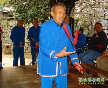 三棒鼓,唐代稱三仗鼓,明沈行符《顧曲雜言》 曰:“吳下何來有打三棒鼓乞錢者,余幼時有見之也, 起于唐咸通中(公元865年)”約于明代傳入本境, 并逐漸成為群眾增聞樂見的民間藝術形式。每年春節(jié) ,藝人們結伴走村竄寨拜年,表演對象不分貧富,戶 戶必到。如遇貧寒之家,表演者將別家贈送禮品相送 ,意在人人過節(jié)歡喜。充分體現(xiàn)出土家族人熱情好客 ,心地善良的民族性格,對加強民族團結有一定作用 。 三棒鼓通常由三至五人組成,一人擊鼓唱詞,一 人鑼鈸配樂,一人?;ò?。花棒三根,長一尺,舞者 左右手各持一根,將另一根拋在空中,左右開弓,擊 打空中花棒使之不落地。也有以刀代棒,以五刀代三 棒的技藝。技藝高強者,突然把刀拋得極高,來一個 眼花繚亂,不禁稱絕。打三棒鼓,通常有“鬧春耕” 、“收割打場”、“慶豐收”、“拜年節(jié)”四套,分 “鯉魚跳龍門”、“玉女穿梭”、“板巖漂灘”等項 目。打三棒鼓技巧性強,表演時需高度集中,用力適 當,貫通一氣,并與演唱者默默配合。