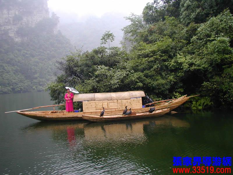 (鸕鶿捕魚)大家看,那是鸕鶿在捕魚。從前,武陵源人以打獵捕魚為生。漁夫養(yǎng)一、二只鸕鶿,就等于開了半坡荒地。鸕鶿是魚的天敵。鸕鶿見魚就拼命追殺,是小魚,就一口吞了,可惜漁夫在它們的脖子上扎了個(gè)小圈兒,魚兒咽不下,卡在喉管里,只好上船吐出來(lái);若遇到大魚,就先啄眼睛,讓它失去反抗力,再勾住腮殼,把它拖出水面。