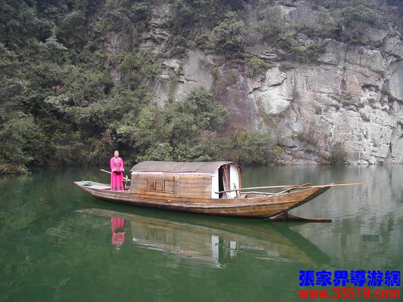 (寶峰湖)云梯直上最高層,忽見粼粼碧水深。果然高峽出平湖,人間瑤池此處尋。寶峰湖水深72米,湖長(zhǎng)約2華里,水闊處達(dá)150余米,狹窄處公10余米,蓄水量為400多萬(wàn)立方米。您腳下的這座水壩壩址,在我國(guó)水壩選址筑湖史上,堪稱奇跡:壩高80米,最寬處12米,最窄處僅3米。這座風(fēng)光秀麗的山湖始建于1974年,1979年建成,主要用于山區(qū)小水電和農(nóng)田灌溉。利用它做旅游風(fēng)景資源,則是從1984年才開始的。隨著武陵源區(qū)旅游事業(yè)的蓬勃發(fā)展,這座美麗的山湖越來(lái)越為中外游客所鐘愛。