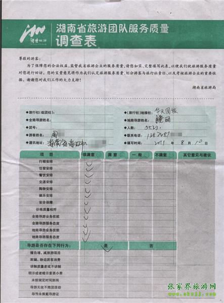 2011年8月10日周先生一行8人旅游質量反饋