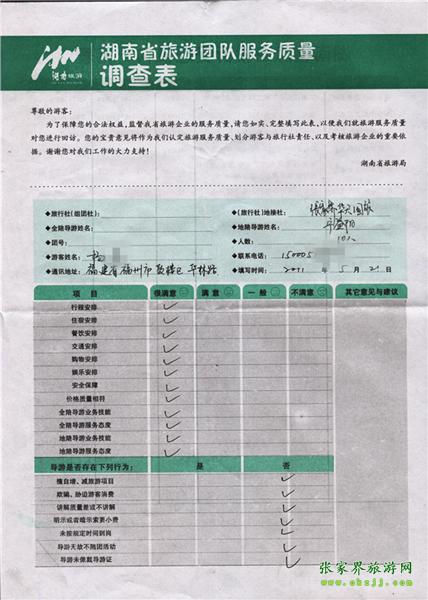 2011年5月21號楊小姐一行10人旅游質量反饋